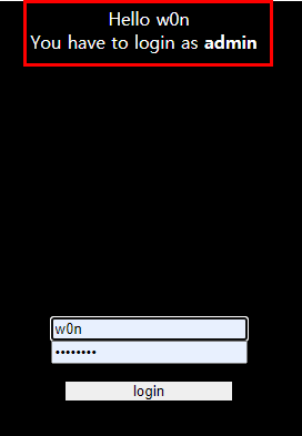 생성한 ' admin ' / '1234' 입력 하여 로그인을 시도하니 정상적으로 문제가 풀렸습니다